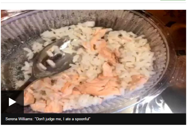 ''Kinaonja kama dawa ya kusafisha nyumba''.Katika video ya Snap chat ,wiliams alielezea kuwa alichukua samaki na wali uliokuwa katika chakula kilichopewa mbwa katika hoteli aliyokuwa akilala.